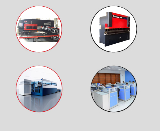 自動數控沖床、激光切割、數控折彎、大型自動噴塑,烤漆流水線,大型面包爐烤箱,靜電噴粉、高溫烘烤